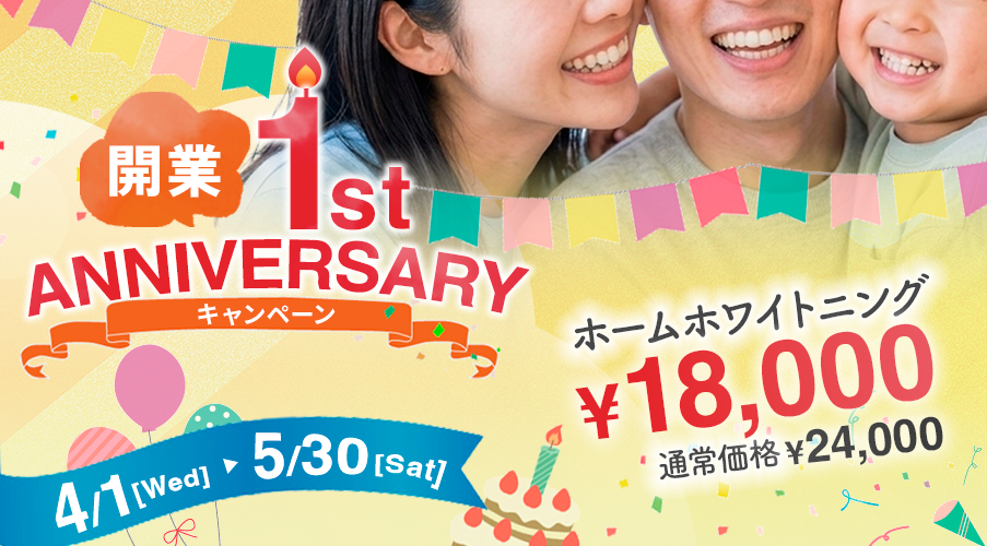 【開業1周年記念】ホワイトニング割引キャンペーンのお知らせ